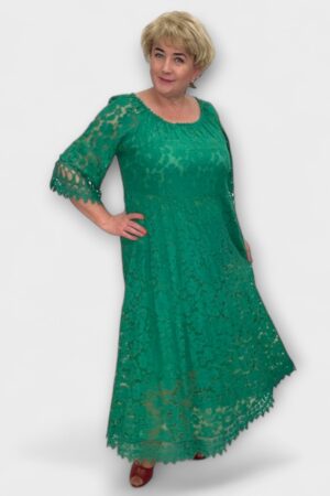 KL.161 – Roheline õhuliste varrukatega pikk pitsiline kleit “Klaarika”