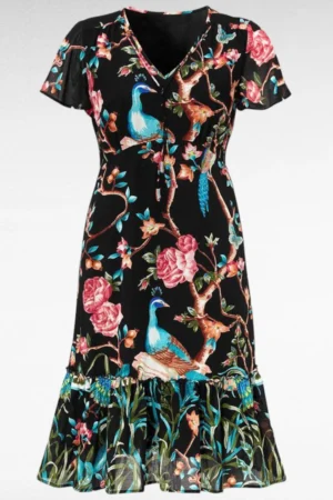 Efektne värvilise linnumustriga kleit “Cellbes” (KL.027)