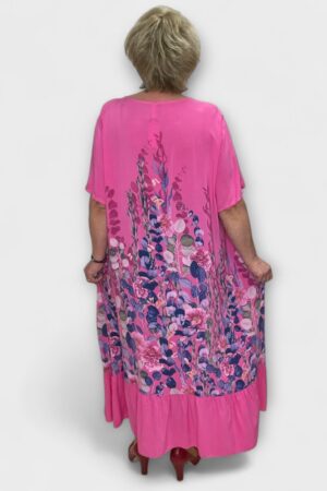 Pikk lillemustriga roosa suvine naiste kleit “Hannamia” (KL.913)