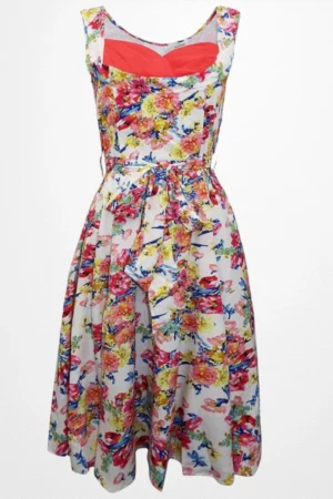 Valge kirju lillemustriga naiste retrokleit “Anmol” (KL.508)
