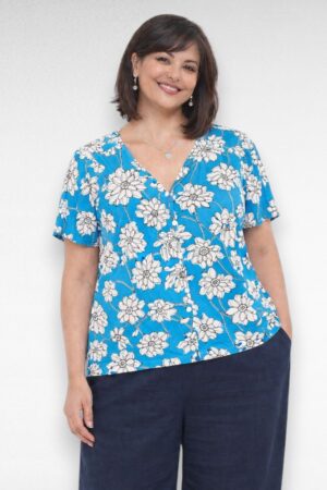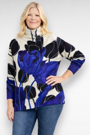 Sinisekirju suure lillemustriga kõrge kaelusega sviiter (KU.094)
