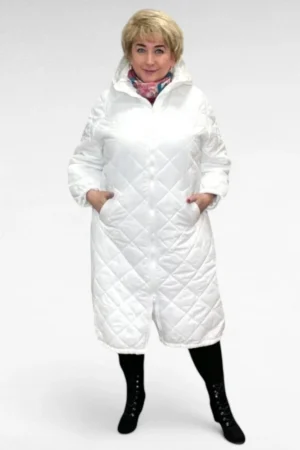 JO.063 – Valge tepitud materjalist kapuutsiga k/s mantel