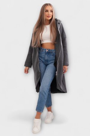 JA.103-Pikk seest fliisvoodriga kapuutsiga eest lukuga sügisjakk/pusa