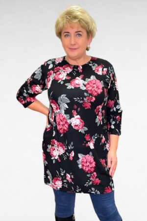 TU.206 – Tumesinine lillemustriga V-kaelusega tuunika “Betti Fashion”
