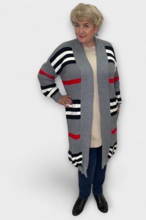 KA.043 – Hall triibulise mustriga pikem soe kardigan “Rafaella”