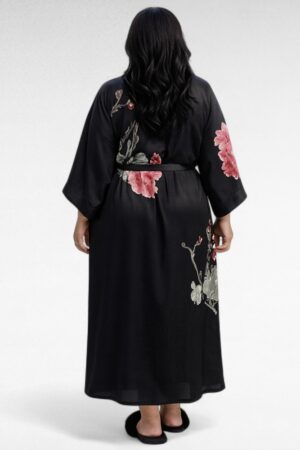 OR.099 – Luksus, mis paitab nahka – must punase lillemustriga hommikumantel “Lisandra”