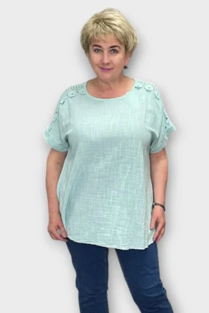 PL.547- Õla pealt pitsiga alt laienev puuvillane pluus