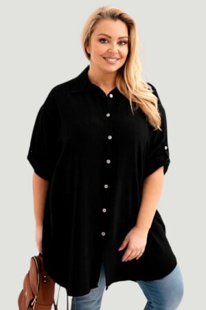 Musliinkangast eest nööpidega pluss suuruses pikem naiste pluus (PL.495)