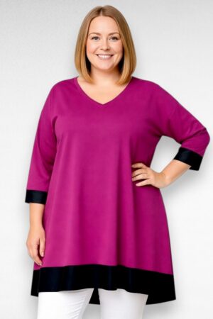 Asümmeetrilise lõikega lerkroosa pluss suuruses naiste tuunika (TU.101)