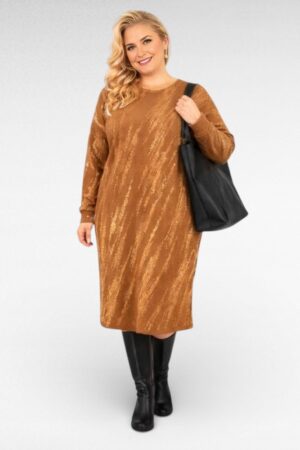 KL.177 – Hallikas pikk lühikeste varrukatega kootud kleit