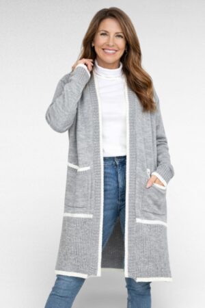 KU.077 – Valgetriibulise mustriga pikk taskutega kardigan “Annika”