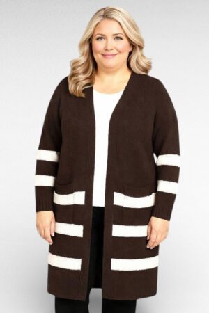 KA.157 -Triibulise mustriga taskutega pikem pehme kardigan