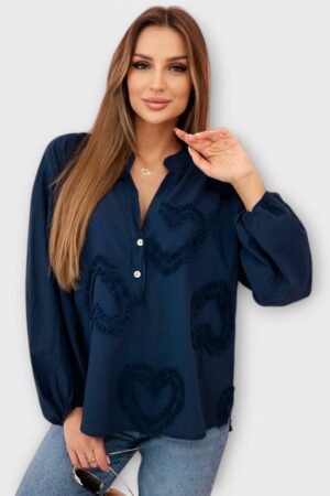 PL.119 – Puuvillane pilkupüüdva südamemustriga balloonvarrukatega pluus