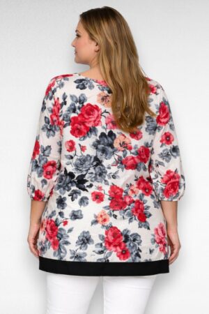 TU.615 – Stiilne punasekirju lillemustriga poolpikkade varrukatega tuunika “Esmira Fashion”