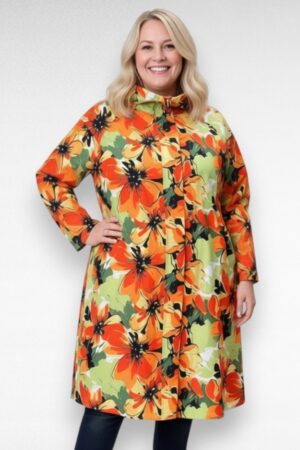 Oranžikirju lillemustriga pluss suurus naiste kevadsuvine jope/mantel (J0.043)