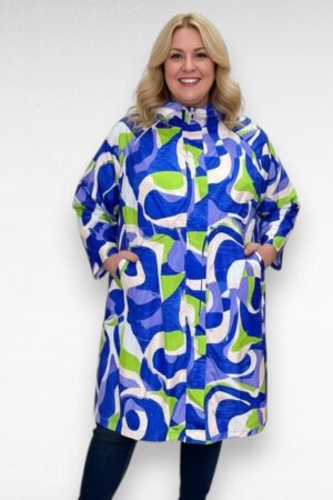 Sinise-ja kollasekirju mustriga pluss suurus kevadsuvine kilemantel (JO.054)