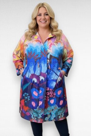 Sinise-ja roosakirju efektse mustriga pluss suurus kevadsuvine mantel (J0.053)